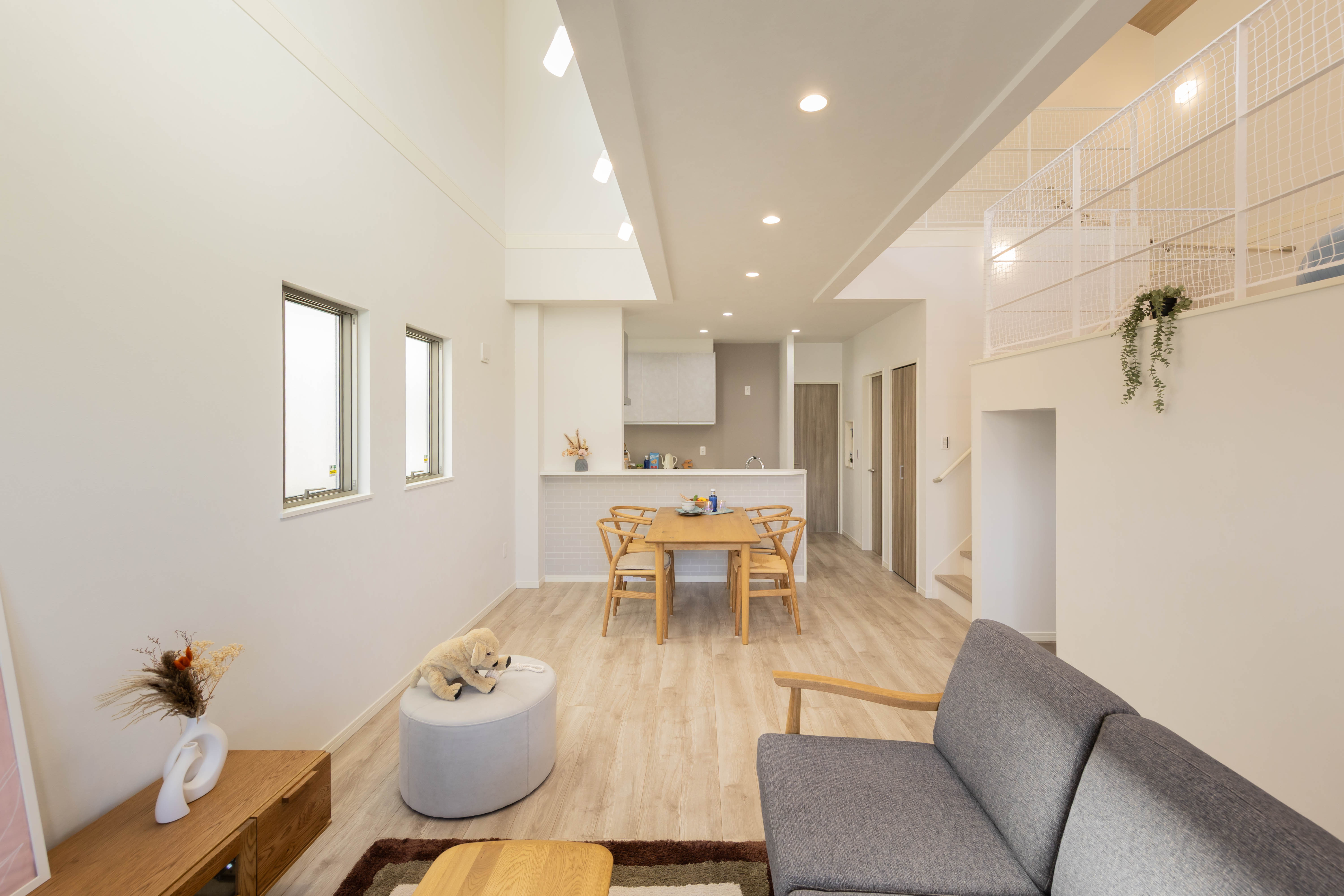 スキップフロアが空間に立体感を生み、家族の気配を感じながらも程よい距離感を保てます。