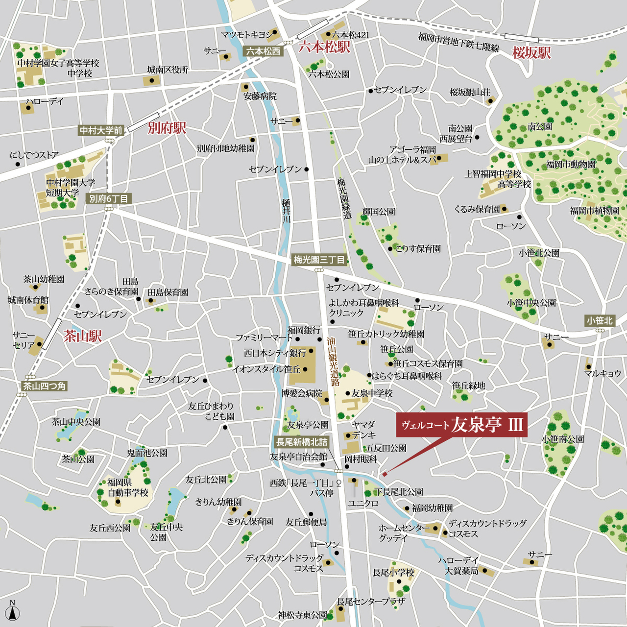 - 福岡市立「友泉」中学校徒歩約5分(350m)