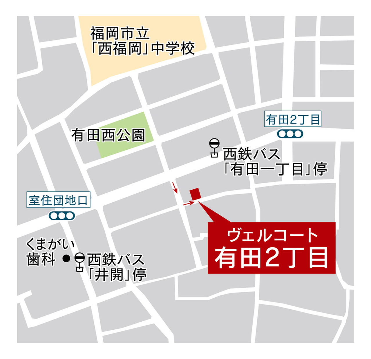 - 福岡市立「西福岡」中学校徒歩約5分(350m)