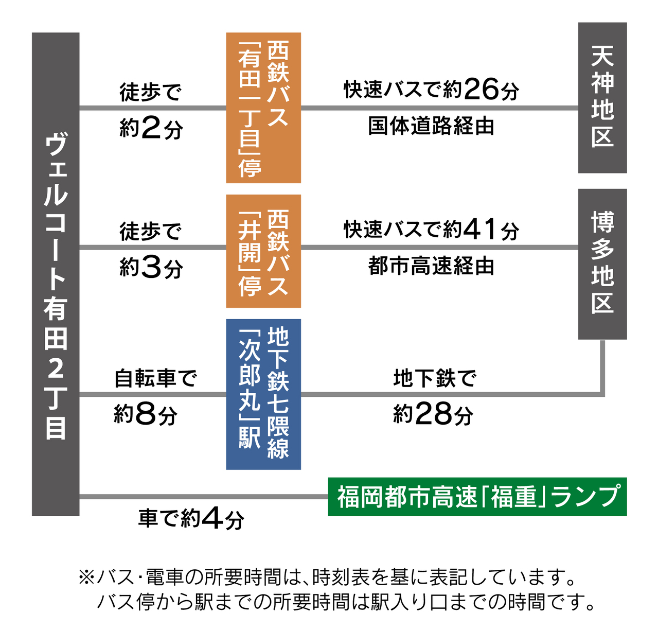 - 西鉄バス「有田一丁目」停徒歩約2分(120m)